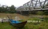 Jembatan Glagah dari bawah di Kulonprogo, Yogyakarta, Jumat (14/10/2022). Jembatan Glagah yang berada di ruas Jalur Jalan Lintas Selatan (JJLS) terpaksa ditutup karena rusak. Sementara untuk kendaraan roda dua masih bisa lewat. Dengan kondisi ini maka kendaraan roda empat dialihkan melalui Jalan Wates-Purworejo. (FOTO : Republika/Wihdan Hidayat)