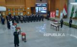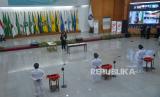 Suasana acara pelantikan yang dimpimpin oleh Menteri Dalam Negeri Tito Karnavian di Kementerian Dalam Negeri, Jakarta, Senin (17/10/2022). Dalam acara tersebut Heru Budi Hartono sah dilantik sebagai Penjabat (Pj) Gubernur DKI Jakarta menggantikan Anies Baswedan dan Ahmad Riza Patria yang purnatugas. Prayogi/Republika. (FOTO : Prayogi/Republika. )