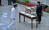REPUBLIKA.CO.ID,JAKARTA -- Menteri Dalam Negeri Tito Karnavian menyaksikan penandatanganan berita acara pelantikan Penjabat (Pj) Gubernur DKI Jakarta Heru Budi Hartono di Kementerian Dalam Negeri, Jakarta, Senin (17/10/2022).