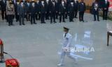 Menteri Dalam Negeri Tito Karnavian memimpin acara pelantikan di Kementerian Dalam Negeri, Jakarta, Senin (17/10/2022). Dalam acara tersebut Heru Budi Hartono sah dilantik sebagai Penjabat (Pj) Gubernur DKI Jakarta menggantikan Anies Baswedan dan Ahmad Riza Patria yang purnatugas. Prayogi/Republika. (FOTO : Republika/Prayogi)