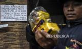 Seorang pedagang memasukan tahu ke dalam plastik saat mengambil dagangannya di Sentra Produksi Tahu Cibuntu, Bandung, Jawa Barat, Senin (17/10/2022). Pengusaha pabrik tahu di Sentra Produksi Cibuntu menaikkan harga tahu dari Rp50 ribu menjadi Rp60 ribu per papan serta tempe dari Rp12 ribu menjadi Rp 13 ribu per kilogram imbas dari kenaikan harga kacang kedelai. (FOTO : ANTARA/Raisan Al Farisi)