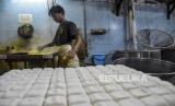 Pekerja menyelesaikan pembuatan tahu di salah satu industri tahu rumahan di Jalan Aki Padma, Babakan Ciparay, Kota Bandung, Senin (17/10/2022). Berdasarkan keterangan pengusaha tahu dan tempe di kawasan tersebut, akibat tingginya harga kedelai yang mencapai Rp12.800 hingga Rp14.000 per kilogram membuat mereka menaikkan harga tahu menjadi Rp60 ribu per papan serta harga tempe menjadi Rp13 ribu per kilogram. Republika/Abdan Syakura (FOTO : REPUBLIKA/ABDAN SYAKURA)