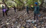 Sejumlah aktivis lingkungan mengidentifikasi merek sampah kemasan plastik yang menimbun kawasan konservasi mangrove di Kelurahan Kabonga Besar, Donggala, Sulawesi Tengah, Ahad (16/10/2022). Identifikasi yang diinisiasi Seangle Indonesia Palu dan Mangrovers Teluk Palu itu untuk mengetahui spesifikasi sampah plastik khususnya kemasan menyusul telah tercemarnya teluk itu dengan sampah plastik baik jenis makro, meso, maupun mikroplastik. (FOTO : ANTARA/Basri Marzuki)