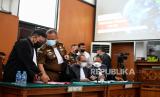 Terdakwa kasus pembunuhan berencana Ferdy Sambo bersiap menjalani sidang perdana di Pengadilan Negeri Jakarta Selatan, Jakarta, Senin (17/10/2022). Ferdy Sambo bersama Istirnya Putri Candrawathi, Kuat Maruf dan Bripka Ricky Rizal menjalani sidang perdana dengan agenda pembacaan surat dakwaan oleh Jaksa Penuntut Umum (JPU). (FOTO : Republika/Thoudy Badai)