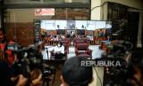 Jurnalis mengambil gambar saat sidang perdana terhadap terdakwa kasus pembunuhan berencana Putri Candrawathi di Pengadilan Negeri Jakarta Selatan, Jakarta, Senin (17/10/2022). Istri mantan Kadiv Propam Polri Irjen Pol Ferdy Sambo, Putri Candrawathi bersama tersangka lainnya diantaranya Ferdy Sambo, Kuat Maruf dan Bripka Ricky Rizal menjalani sidang perdana dengan agenda pembacaan surat dakwaan oleh Jaksa Penuntut Umum (JPU). Republika/Thoudy Badai (FOTO : Republika/Thoudy Badai)