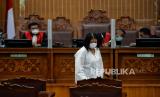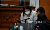 Terdakwa kasus pembunuhan berencana Putri Candrawathi saat menjalani sidang perdana di Pengadilan Negeri Jakarta Selatan, Jakarta, Senin (17/10/2022). Istri mantan Kadiv Propam Polri Irjen Pol Ferdy Sambo, Putri Candrawathi bersama tersangka lainnya diantaranya Ferdy Sambo, Kuat Maruf dan Bripka Ricky Rizal menjalani sidang perdana dengan agenda pembacaan surat dakwaan oleh Jaksa Penuntut Umum (JPU) atas kasus dugaan pembunuhan berencana terhadap Brigadir Nofriansyah Yosua Hutabarat alias Brigadir J. Republika/Thoudy Badai (FOTO : Republika/Thoudy Badai)