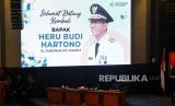 Penjabat (Pj) Gubernur DKI Jakarta Heru Budi Hartono saat menghadiri rapat paripurna DPRD DKI Jakarta di ruang Rapat Paripurna DPRD DKI Jakarta, Senin (17/10/2022). Pj Gubernur DKI Jakarta Heru Budi Hartono menghadiri rapat paripurna DPRD DKI Jakarta untuk pertama kalinya usai dilantik. Adapun agenda paripurna tersebut yaitu Penyampaian Laporan hasil pembahasan Bapemperda terhadap Raperda tentang pencabutan Peraturan Daerah Nomor 1 Tahun 2014 tentang Rencana Detail Tata Ruang dan Peraturan Zonasi.  (FOTO : Republika/Prayogi)
