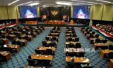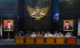 Suasana Rapat Paripurna DPRD DKI Jakarta di ruang Rapat Paripurna DPRD DKI Jakarta, Senin (17/10/2022). Pj Gubernur DKI Jakarta Heru Budi Hartono menghadiri rapat paripurna DPRD DKI Jakarta untuk pertama kalinya usai dilantik. Adapun agenda paripurna tersebut yaitu Penyampaian Laporan hasil pembahasan Bapemperda terhadap Raperda tentang pencabutan Peraturan Daerah Nomor 1 Tahun 2014 tentang Rencana Detail Tata Ruang dan Peraturan Zonasi.  (FOTO : Republika/Prayogi)