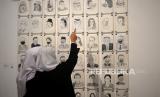 Pengunjung melihat karya saat Pameran Nandur Srawung ke-9 di Taman Budaya Yogyakarta, Senin (17/10/2022). Pameran Nandur Srawung ke-9 tahun ini mengusung tema Matrix/ Mayapada. Tema itu bermakna gagasan untuk melakukan pembacaan realita ganda antara fisik dan nonfisik. Lebih dari 240 partisipan yang terlibat dalam pameran ini. Selain diikuti seniman tanah air, pameran ini juga diikuti oleh seniman luar negeri diantaranya dari negara Rusia, Italia, Australia, dan Korea. (FOTO : Republika/Wihdan Hidayat)