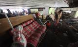 Warga membawa barang-barangnya saat pembongkaran bangunan liar di bawah kolong Jalan Tol Surabaya-Gempol di kawasan Lasem Barat, Surabaya, Jawa Timur, Senin (17/10/2022). Pemkot Surabaya membongkar bangunan-bangunan liar yang berada di kolong jalan tol tersebut dan memindahkan penghuninya ke sejumlah rusun di Surabaya. (FOTO : ANTARA/Didik Suhartono)
