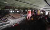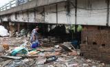 Warga berjalan menggunakan alat bantu saat pembongkaran bangunan liar di bawah kolong Jalan Tol Surabaya-Gempol di kawasan Lasem Barat, Surabaya, Jawa Timur, Senin (17/10/2022). Pemkot Surabaya membongkar bangunan-bangunan liar yang berada di kolong jalan tol tersebut dan memindahkan penghuninya ke sejumlah rusun di Surabaya. (FOTO : ANTARA/Didik Suhartono)