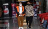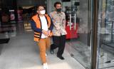 REPUBLIKA.CO.ID, Terdakwa Dandan Jaya Kartika (kiri) berjalan menuju mobil tahanan usai menjalani sidang pembacaan tuntutan di Gedung Merah Putih KPK, Jakarta, Senin (17/10/2022). Jaksa Penuntut Umum KPK menuntut Dandan yang merupakan Direktur Utama PT Java Orient Property tersebut dengan pidana penjara dua tahun dan denda Rp200 juta subsider kurungan empat bulan karena menyuap mantan Wali Kota Yogyakarta Haryadi Suyuti terkait Izin Mendirikan Bangunan (IMB) Apartemen Royal Kedhaton, Kota Yogyakarta.