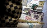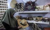 Seorang santri melihat produk topi rajut pada gelaran Expo dan Festival Santri Jawa Barat di Bale Asri Masjid Pusdai, Kota Bandung, Selasa (18/10/2022). Festival yang diikuti oleh santri dari berbagai pondok pesantren di Jawa Barat tersebut diisi dengan berbagai lomba serta pameran UMKM dan produk buatan pondok pesantren. Festival tersebut merupakan rangkaian dari peringatan Hari Santri yang jatuh pada 22 Oktober mendatang. Republika/Abdan Syakura (FOTO : REPUBLIKA/ABDAN SYAKURA)