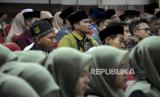 Sejumlah santri dari berbagai pondok pesantren menghadiri gelaran Expo dan Festival Santri Jawa Barat di Bale Asri Masjid Pusdai, Kota Bandung, Selasa (18/10/2022). Festival yang diikuti oleh santri dari berbagai pondok pesantren di Jawa Barat tersebut diisi dengan berbagai lomba serta pameran UMKM dan produk buatan pondok pesantren. Festival tersebut merupakan rangkaian dari peringatan Hari Santri yang jatuh pada 22 Oktober mendatang. Republika/Abdan Syakura (FOTO : REPUBLIKA/ABDAN SYAKURA)