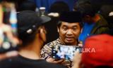 REPUBLIKA.CO.ID, BANDUNG -- Direktur Lingkaran Madani (Lima) Ray Rangkuti diwawancara wartawan usai menyampaikan pemaparan saat Sosialisasi Pengawasan Siber dalam Pemilu 2024 yang digelar Bawaslu Jawa Barat di Hotel Papandayan, Kota Bandung, Selasa (18/10).