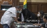 Terdakwa kasus suap barang dan jasa di Pemerintahan Kabupaten Langkat, Sumatera Utara, Terbit Rencana Perangin Angin (kiri) berbincang dengan kuasa hukumnya usai di vonis oleh majelis hakim di Pengadilan Tipikor, Jakarta, Rabu (19/10/2022). Bupati Langkat non-aktif Terbit Rencana Perangin Angin divonis 9 tahun penjara ditambah denda Rp300 juta subsider 5 bulan kurungan karena terbukti menerima suap senilai Rp572juta dari pengusaha Muara Perangin Angin terkait paket pekerjaan di Dinas Pekerjaan Umum dan Penataan Ruang (PUPR) dan Dinas Pendidikan kabupaten Langkat tahun 2021. (FOTO : ANTARA/Muhammad Adimaja)