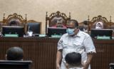Terdakwa kasus suap barang dan jasa di Pemerintahan Kabupaten Langkat, Sumatera Utara, Terbit Rencana Perangin Angin bersiap menjalani sidang dengan agenda pembacaan vonis oleh majelis hakim di Pengadilan Tipikor, Jakarta, Rabu (19/10/2022). Bupati Langkat non-aktif Terbit Rencana Perangin Angin divonis 9 tahun penjara ditambah denda Rp300 juta subsider 5 bulan kurungan karena terbukti menerima suap senilai Rp572juta dari pengusaha Muara Perangin Angin terkait paket pekerjaan di Dinas Pekerjaan Umum dan Penataan Ruang (PUPR) dan Dinas Pendidikan kabupaten Langkat tahun 2021. (FOTO : ANTARA/Muhammad Adimaja)