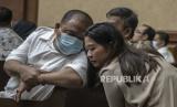 Terdakwa kasus suap barang dan jasa di Pemerintahan Kabupaten Langkat, Sumatera Utara, Terbit Rencana Perangin Angin (kiri) berbincang dengan kerabatnya saat akan menjalani sidang dengan agenda pembacaan vonis oleh majelis hakim di Pengadilan Tipikor, Jakarta, Rabu (19/10/2022). Bupati Langkat non-aktif Terbit Rencana Perangin Angin divonis 9 tahun penjara ditambah denda Rp300 juta subsider 5 bulan kurungan karena terbukti menerima suap senilai Rp572juta dari pengusaha Muara Perangin Angin terkait paket pekerjaan di Dinas Pekerjaan Umum dan Penataan Ruang (PUPR) dan Dinas Pendidikan kabupaten Langkat tahun 2021. (FOTO : ANTARA/Muhammad Adimaja)