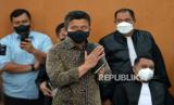 Terdakwa kasus pembunuhan berencana terhadap Brigadir Nofriansyah Yosua Hutabarat alias Brigadir J, Ferdy Sambo bersiap menjalani sidang lanjutan di Pengadilan Negeri Jakarta Selatan, Jakarta, Kamis (20/10/2022). Sidang tersebut beragendakan mendengarkan tanggapan jaksa penuntut umum (JPU) atas eksepsi terdakwa. Sementara, dalam sidang tersebut JPU memohon kepada Majelis Hakim untuk menolak seluruh dalil eksepsi atau nota keberatan dari tim penasehat hukum Ferdy Sambo dan Putri Candrawathi. (FOTO : Republika/Thoudy Badai)