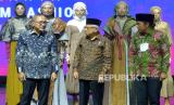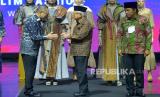 Wakil Presiden Maruf Amin berbincang bersama Menteri Perdagangan Zulkifli Hasan dan Pj Gubernur Banten Al Muktabar pada pembukaan Jakarta Muslim Fashion Week (JMFW) 2023 di ICE, BSD City, Banten, Kamis (20/10/2022). Jakarta Muslim Fashion Week 2023 yang diikuti oleh 144 desainer tersebut diharapkan mampu meningkatkan kesadaran akan potensi besar bisnis fesyen muslim sehingga seluruh pemangku kepentingan semakin peduli untuk memajukan industri ini. JMFW 2023 akan digelar selama 3 hari mulai dari 20 Oktober hingga 22 Oktober 2022. (FOTO : Prayogi/Republika. )