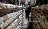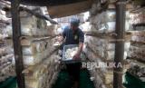 REPUBLIKA.CO.ID, BANTUL -- Petani memanen jamur tiram di Metaram Jamur, Sribitan, Bantul, Yogyakarta, Jumat (21/10/2022). Setiap hari Daliman rata-rata bisa memanen jamur tiram sebanyak 10 kilogram untuk tiga ribu baglog jamur. Jamur biasanya dijual ke pedagang lagi dengan harga Rp 15 ribu perkilogram. Meski cuaca sedang tidak menentu, ini tidak mempengaruhi hasil panen jamur tiram