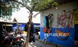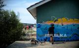Seniman menyelesaikan pembuatan mural dalam acara Jakarta Thinkcity di kawasan pemukiman Marunda, Jakarta, Sabtu (22/10/2022). Kegiatan pembuatan mural tersebut bertujuan untuk meningkatkan kesadaran publik akan isu perubahan iklim yang telah nyata terjadi di Ibu Kota khususnya wilayah Jakarta Utara. (FOTO : Republika/Thoudy Badai)