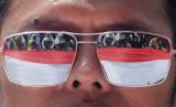 Bentangan kain merah putih terpantul pada kacamata warga saat Kirab Merah Putih di Kacangan, Andong, Boyolali, Jawa Tengah, Sabtu (22/10/2022). Selain untuk memeriahkan Hari Santri Nasional, kirab dengan membentangkan kain merah putih sepanjang 1.000 meter yang dilakukan para santri dan pengurus Pondok Pesantren Salafiyah Darussalam Kacangan itu juga bertujuan untuk menanamkan rasa cinta kepada NKRI. (FOTO : ANTARA/Aloysius Jarot Nugroho)