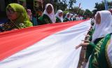 Peserta membentangkan kain merah putih saat mengikuti Kirab Merah Putih di Kacangan, Andong, Boyolali, Jawa Tengah, Sabtu (22/10/2022). Selain untuk memeriahkan Hari Santri Nasional, kirab dengan membentangkan kain merah putih sepanjang 1.000 meter yang dilakukan para santri dan pengurus Pondok Pesantren Salafiyah Darussalam Kacangan itu juga bertujuan untuk menanamkan rasa cinta kepada NKRI. (FOTO : ANTARA/Aloysius Jarot Nugroho)
