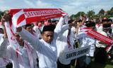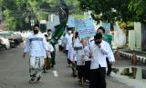 Sejumlah santri mengikuti kirab saat memperingati Hari Santri Nasional (HSN) 2022 di Bekasi, Jawa Barat, Sabtu (22/10/2022). Peringatan HSN yang diikuti sejumlah pondok pesantren di Bekasi tersebut bertema ?Berdaya Menjaga Martabat Kemanusiaan? untuk mencerminkan keberadaan santri dalam catatan perjalanan sejarah perjuangan kemerdekaan Republik Indonesia. (FOTO : ANTARA/Suwandy)
