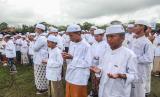 Sejumlah santri berdoa saat mengikuti upacara peringatan Hari Santri Nasional 2022 di halaman Kantor Gubernur Provinsi Kalimantan Tengah, Palangka Raya, Kalimantan Tengah, Sabtu (22/10/2022). Kegiatan tersebut diikuti ribuan santri dan pelajar dengan mengusung tema Berdaya Menjaga Martabat Kemanusiaan untuk menumbuhkan sikap moderat dan toleransi kalangan santri, umat Islam, dan seluruh bangsa. (FOTO : ANTARA/Makna Zaezar)