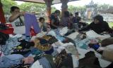 Warga yang terdampak banjir bandang memilih pakaian hasil sumbangan di area Posko Pengungsian Bencana Banjir Bandang, lingkungan Bilukpoh Kangin, Kelurahan Tegal Cangkring, Jembrana, Bali, Sabtu (22/10/2022). Sebanyak 258 orang dari 79 kepala keluarga yang rumahnya rusak akibat bencana banjir bandang yang terjadi pada Minggu (16/10) di kawasan jembatan Bilukpoh, Jembrana tersebut mengungsi di sebuah balai yang dijadikan posko pengungsian. (FOTO : ANTARA/Nyoman Hendra Wibowo)