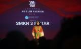 REPUBLIKA.CO.ID, TANGERANG -- Model memperagakan busana muslim karya sejumlah pelajar SMKN di ajang Jakarta Muslim Fashion Week 2022 di Indonesia Convention Exibition (ICE) BSD, Tangerang, Banten, Sabtu (22/10/2022). Acara tersebut diharapkan dapat mewujudkan Indonesia sebagai pusat fesyen muslim dunia.
