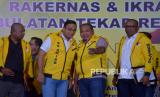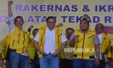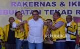 REPUBLIKA.CO.ID,JAKARTA -- Mantan Gubernur DKI Jakarta Anies Baswedan menerima rompi dalam acara Rakernas dan Ikrar Kebulatan Tekad Relawan Go-Anies di Jakarta, Ahad (23/10/2022).