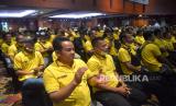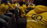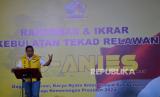 Sejumlah relawan menghadiri acara Rakernas dan Ikrar Kebulatan Tekad Relawan Go-Anies di Jakarta, Ahad (23/10/2022). Go-Anies merupakan kelompok relawan yang mendeklarasikan untuk mendukung dan memenangkan Mantan Gubernur DKI Jakarta Anies Baswedan tersebut menjadi Presiden pada pilpres 2024. Prayogi/Republika. (FOTO : Prayogi/Republika.)