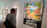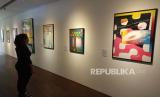 REPUBLIKA.CO.ID,JAKARTA -- Pengunjung menikmati pameran poster karya dari April Greiman, sebagai pelopor seni rupa, yang menggunakan teknologi komputer sebagai alat disainnya, sejak akhir tahun 1970 lalu, di Galeri Dia. Lo, Gue, di Kemang, Jakarta Selatan, Ahad (23/10/2022).