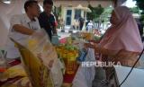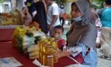 REPUBLIKA.CO.ID, JAKARTA -- Warga berbelanja kebutuhan saat berlangsungnya pasar murah di GOR Tanah Abang, Jakarta, Selasa (25/10/2022). Pemprov DKI Jakarta menggelar pasar murah di lima wilayah kota administrasi mulai 24-29 Oktober 2022 guna memenuhi kebutuhan masyarakat sekaligus meringankan beban masyarakat ketika harga kebutuhan pokok meningkat.
