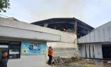 Api belum bisa dipadamkan akibat banyaknya material kayu yang terbakar..
