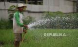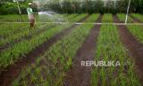 Petani menyiram tanaman dengan pompa air listrik di lahan pertanian Srigading, Bantul, Yogyakarta, Selasa (25/10/2022). Elektrifikasi pertanian kini sudah masuk di lahan pasir pesisir Selatan Bantul. Beberapa lahan milik petani sudah dilengkapi dengan meteran listrik, sehingga untuk pengairan tidak lagi menggunakan mesin. Efeknya lebih menghemat biaya produksi. Biasanya untuk satu hektare lahan pasir menghabiskan Rp 85 ribu untuk BBM, dan untuk listrik hanya Rp 15 ribu. (FOTO : Republika/Wihdan Hidayat)