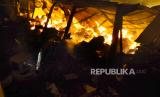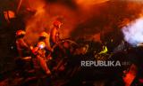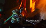 REPUBLIKA.CO.ID, BANDUNG -- Petugas Damkar gabungan berusaha memadamkan gudang triplek yang terbakar di Jalan Soekarno-Hatta, Cijagra, Bandung, Jawa Barat, Selasa (25/10/2022).