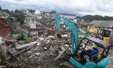 REPUBLIKA.CO.ID, BOGOR -- Petugas mengoperasikan alat berat saat pembongkaran bangunan tanpa ijin di Gang Barjo, Kelurahan Kebon Kalapa, Kota Bogor, Jawa Barat, Selasa (25/10/2022). Pemerintah Kota Bogor membongkar bangunan indekos yang tidak memiliki Ijin Mendirikan Bangunan (IMB) dan berada di atas tebing lokasi longsor di Kelurahan Kebon Kalapa tersebut.
