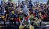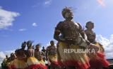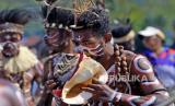REPUBLIKA.CO.ID, JAYAPURA -- Seorang penari meniup terompet tradisional khas Papua, triton dalam Festival Danau Sentani ke-13 di Pantai Khalkote, Kabupaten Jayapura, Papua, Selasa (25/10/2022).