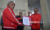 Ketua DPC PDIP Kota Solo FX Hadi Rudyanto (kanan) bersiap memberi keterangan pers usai pertemuan di Kantor DPP PDI Perjuangan, Jakarta, Rabu (26/10/2022). Bidang Kehormatan DPP PDI Perjuangan memberikan sanksi peringatan keras dan terakhir terhadap FX Hadi Rudyanto terkait dukungan terhadap Gubernur Jawa Tengah Ganjar Pranowo untuk maju pada Pilpres 2024. (FOTO : Republika/Prayogi)