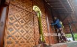 Perangkat desa menutup lumbung pangan tradisional Mataraman usai peresmian di Bambanglipuro, Bantul, Yogyakarta, Rabu (26/10/2022). Dinas Pertanian dan Ketahanan Pangan DIY membangun lumbung tradisional salah satunya bertujuan untuk membantu kelompok tani dalam rangka memenuhi kebutuhan pangan di masyarakat. Selain itu, lumbung pangan tradisional ini juga untuk melestarikan tradisi manajemen stok hasil panen seperti nenek moyang terdahulu. (FOTO : Republika/Wihdan Hidayat)
