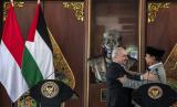 REPUBLIKA.CO.ID,JAKARTA -- Menhan Prabowo Subianto berbincang dengan Perdana Menteri (PM) Palestina Mohammed Ibrahim Shtayyeh usai pertemuan di Kementerian Pertahanan, Jakarta, Rabu (26/10/2022).