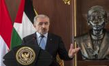 Perdana Menteri (PM) Palestina Mohammed Ibrahim Shtayyeh (kiri) memberikan keterangan kepada media bersama Menhan Prabowo Subianto (kanan) usai pertemuan di Kementerian Pertahanan, Jakarta, Rabu (26/10/2022). Pertemuan tersebut diselenggarakan dalam rangka meningkatkan hubungan keamanan kedua negara.  (FOTO : ANTARA/Muhammad Adimaja)