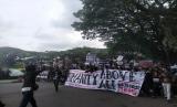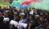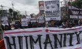 REPUBLIKA.CO.ID, MALANG -- Sejumlah warga dan suporter Arema FC (Aremania) membawa spanduk dan poster saat unjuk rasa di depan Balai Kota Malang, Jawa Timur, Kamis (27/10/2022).