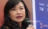 President Director CIMB Niaga Lani Darmawan menyampaikan paparannya pada acara Konferensi pers Paparan Kinerja Q3 – 2022 PT Bank CIMB Niaga Tbk di Jakarta, Kamis (27/10/2022). Disampaiakan bahwa CIMB Niaga perolehan laba sebelum pajak konsolidasi (unaudited) sebesar Rp5 triliun pada sembilan bulan pertama tahun 2022 (“9M22”), naik sebesar 22,5% year-on-year (YOY), dan menghasilkan earnings per share Rp154,13. Hasil positif tersebut, terutama dikarenakan adanya peningkatan pendapatan seiring dengan pertumbuhan bisnis yang baik, biaya yang terkendali, dan tren kualitas underlying asset yang lebih baik. Hal ini mendorong CIMB Niaga untuk terus memberikan nilai tambah kepada para shareholders. foto: darmaan/Republika (FOTO : REPUBLIKA/DARMAWAN)