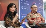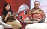 President Director CIMB Niaga Lani Darmawan (kiri) bersama dengan Strategy Finance & SPAPM Director CIMB Niaga Lee Kai Kwong (kiri) menyampaikan paparannya pada acara Konferensi pers Paparan Kinerja Q3 – 2022 PT Bank CIMB Niaga Tbk di Jakarta, Kamis (27/10/2022). Disampaiakan bahwa CIMB Niaga perolehan laba sebelum pajak konsolidasi (unaudited) sebesar Rp5 triliun pada sembilan bulan pertama tahun 2022 (“9M22”), naik sebesar 22,5% year-on-year (YOY), dan menghasilkan earnings per share Rp154,13. Hasil positif tersebut, terutama dikarenakan adanya peningkatan pendapatan seiring dengan pertumbuhan bisnis yang baik, biaya yang terkendali, dan tren kualitas underlying asset yang lebih baik. Hal ini mendorong CIMB Niaga untuk terus memberikan nilai tambah kepada para shareholders. foto: darmaan/Republika (FOTO : REPUBLIKA/DARMAWAN)
