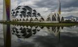 Suasana Masjid Raya Al Jabbar yang masih dalam tahap pembangunan di Gedebage, Bandung, Jawa Barat, Kamis (27/10/2022). Pemerintah Provinsi Jawa Barat menargetkan pada Desember 2022 masjid tersebut dapat diresmikan sehingga bisa digunakan sebagai infrastruktur tempat ibadah yang sejalan dengan pusat kawasan strategis pertumbuhan perekonomian baru dalam wacana pemindahan pusat pemerintahan Jawa Barat di area Tegalluar. (FOTO : ANTARA/Novrian Arbi)