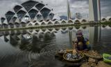 Warga mencuci ikan di danau retensi Masjid Raya Al Jabbar yang masih dalam tahap pembangunan di Gedebage, Bandung, Jawa Barat, Kamis (27/10/2022). Pemerintah Provinsi Jawa Barat menargetkan pada Desember 2022 masjid tersebut dapat diresmikan sehingga bisa digunakan sebagai infrastruktur tempat ibadah yang sejalan dengan pusat kawasan strategis pertumbuhan perekonomian baru dalam wacana pemindahan pusat pemerintahan Jawa Barat di area Tegalluar. (FOTO : ANTARA/Novrian Arbi)